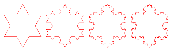 1 žingsnis. Kiekvieną trikampio kraštinę dalijame į tris lygias dalis. Prie kiekvienos kraštinės vidurinės dalies piešiame mažą lygiakraštį trikampį.