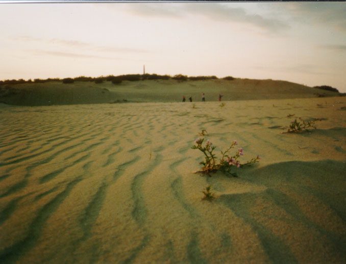 Nuo savo namelio iki didžiųjų kopų einame ne ilgiau kaip pusę valandos. Netgi itin žaviu keliu palei įlanką, kurią pavadinome Portofinu. Į milžinišką kopą geriau nelipti, nes tai gali labai nuvarginti širdį. Ar matėte smėlio kopas iš arti Ziulto saloje? Kuršių nerijos seseris įsivaizduokite penkeriopai didesnes. Pasijunti tarsi Sacharoje. Žadą užgniaužianti pirmykštė didybė.